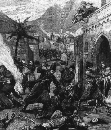 Tekening van Turkse moordpartij op Armeniërs. Volgens Turkse nationalisten gaat het om Armeense propaganda |