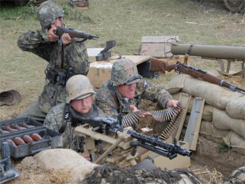In Nederland houden zich pakweg 2.500 mensen hobbymatig bezig met re-enactment, het naspelen van “de levende geschiedenis”. In onze maatschappij krijgen jongens van jongs af aan militaristische rolmodellen voorgeschoteld. Het verbaast dan ook niet dat een flink aantal mannen tot op latere leeftijd graag soldaatje wil spelen. De hobby-soldaten zijn georganiseerd in zo’n 40 verenigingen die weer aangesloten zijn bij het overkoepelende Landelijk Platform Levende Geschiedenis (LPLG). De verenigingen treden overal op: tijdens braderieën, in musea, bij Bevrijdingsfestivals en voor scholieren. De meeste re-enactors hebben zich gespecialiseerd in een tijdvak of een bepaalde gebeurtenis. Zo speelt de een het leven van een Romeinse soldaat na, beeldt een ander een Viking uit en tooit een derde zich in kleding van de Galliërs. Geallieerde re-enactors zijn vooral bekend van de Bevrijdingsfestivals. Daar treden ze elk jaar op in Amerikaanse, Canadese of Britse uniformen. Ze tonen militair materiaal uit de Tweede Wereldoorlog en spelen gevechten na. Jarenlang waren er geen Duitse uniformen te aanschouwen. Dat lag te gevoelig bij een deel van het publiek, en zeker bij mensen die de Tweede Wereldoorlog meegemaakt hebben. Begrijpelijk. Maar langzaam maar zeker komt daar verandering in.