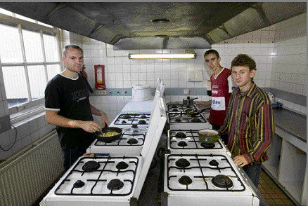 Poolse werknemers in hun tijdelijk onderkomen, een pension in Zandvoort
