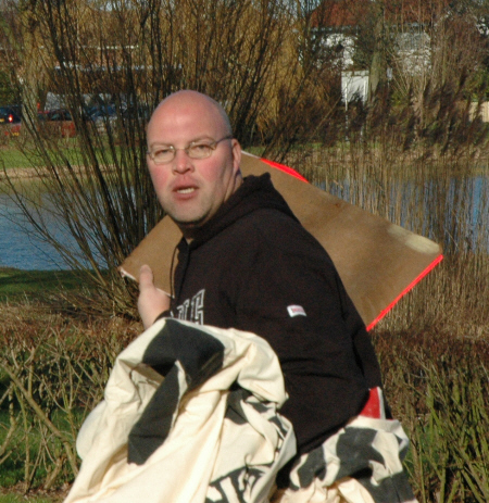 Wijnand de Putter jat ook de spandoeken van de anti-fascisten