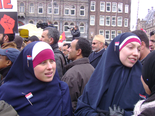 Gezien op de manifestatie tegen racisme van 22 maart 2008 in Amsterdam: nationalistische moslima's waar Paul Scheffer wel van zal watertanden. (Foto: Ellen de Waard)