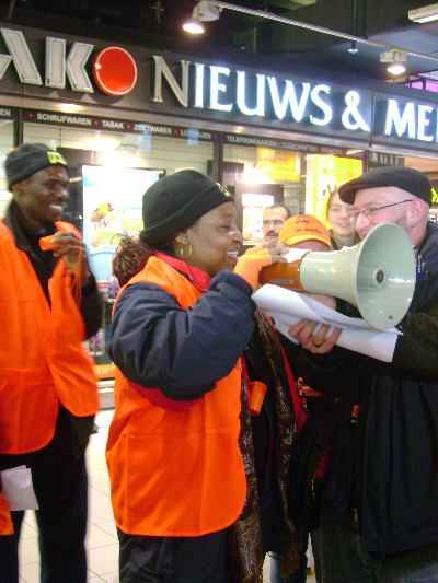 Schoonmakers in actie op Schiphol op 16 december 2007 (Foto: Eric Krebbers)
