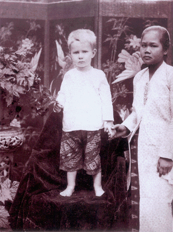 Nederlands-Indië, 1894. Kind van een planter met zijn "baboe".