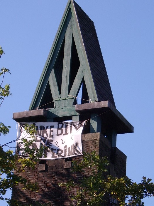12:00 uur: De actievoerders wachten voor de kerk op de ontruiming