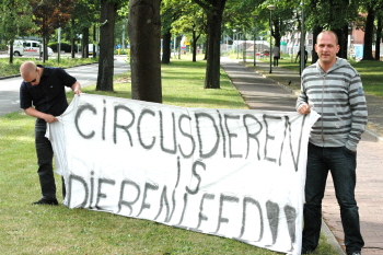 Al voordat het circus de tenten had opgezet, ontstond er een rel. De lokale VVD-wethouder beschouwt het gebruik van wilde dieren namelijk als onnodig dierenleed en verbood het gebruik van een olifant en tijgers. Anders zou een dwangsom volgen. Het verbod leidde tot de nodige media-aandacht. MDTB zag die ontwikkelingen met plezier aan en kondigde voor 4 februari een demonstratie aan bij de avondvoorstelling. Voorafgaand werden, zoals gebruikelijk, de promotieborden van het circus in de stad beplakt met de mededeling “afgelast wegens dierenleed”. Bij de demonstratie werd rekening gehouden met een opkomst van 20 medestanders, maar uiteindelijk deelde slechts een handjevol extreem-rechtsen folders uit. Ook ontrolden ze een spandoek tegen dierenleed en tetterden ze leuzen door een megafoon. Met een geluidswagen probeerde het circus de boel te overstemmen. De demonstratie verliep verder rustig. Bij de middagvoorstelling was er overigens ook al gedemonstreerd, maar dan door wat aanhangers van de Partij voor de Dieren. Eén van hen verklaarde het “prima” te vinden dat ook extreem-rechts zou demonstreren. Acties Het is niet de eerste keer dat MDTB demonstreert tegen het misbruik van dieren in een circus. In 2003 plakken MDTB-ers al posters van een circus in Katwijk over met leuzen als "afgelast wegens dierenmishandeling" en "circusdieren = dierenleed". Vooral na medio 2006 gaat men los, al dan niet in samenwerking met de fascistische organisatie Voorpost waarmee een grote personele overloop bestaat. Men plakt regelmatig posters, ontvreemdt promotieborden en demonstreert bij circussen in IJsselstein, Noordwijk, Den Haag, Haarlem, Beverwijk, Katwijk, Sassenheim, Emmeloord, Zoetermeer en Soest. Meteen na de actie in Soest, medio 2008, trekt men een wijk in waar een moskee gepland is, om daar naar eigen zeggen 1.500 folders tegen te verspreiden. Enkele demonstraties lopen overigens uit op vechtpartijen met circusmedewerkers en ingrijpen van de politie. Met de acties tegen circussen probeert extreem-rechts sympathie onder de bevolking te winnen. Maar de acties sluiten ook aan bij het extreem-rechtse gedachtengoed. Het gebruik van wilde dieren zou namelijk “onnatuurlijk” zijn. Volgens MDTB horen wilde dieren thuis in het wild. Net zo goed als dat pinguïns thuis zouden horen op de Noordpool, “negers” in Afrika en Antillianen op de Antillen. En zo is de cirkel voor extreem-rechts weer rond. Ondanks alle acties weet MDTB weinig nieuwe medestanders aan zich te binden. De opkomst bij demonstraties beperkt zich veelal tot een handvol deelnemers, onder wie natuurlijk MDTB-roerganger Tim Mudde. Die was voorheen bestuurslid van de CP’86. Andere demonstranten zijn onder meer Bernard Baardscheer en Pieter van Rhijn van de Leidse extreem-rechtse band De Ruyter Korps, Martijn de Zeeuw die voorheen in die band speelde en Paul Peters en Wietse van Dijken van Voorpost. De opkomst bij de rechtse dierendemonstraties valt in het niet bij de aanhang die dierenrechtenorganisaties als Respect voor Dieren weten te mobiliseren. Die actiegroep verwerpt in haar uitgangspunten nadrukkelijk ook seksisme, homofobie en racisme. Zo nu en dan pogen extreem-rechtsen zich toch aan te sluiten bij acties van Respect voor Dieren, maar die worden met succes geweerd. Ritueel slachten Extreem-rechts keert zich ook tegen ritueel slachten. In 1999 demonstreert Voorpost, met Mudde in de gelederen, tegen Edah-filialen die ook islamitisch geslacht vlees verkopen. En eind 2001 staat MDTB voor de deuren van de Chicken Cottage in Leiden. Ook dat bedrijf verkoopt ritueel geslacht vlees. Een tiental extreem-rechtsen blokkeert met een spandoek de toegang en er wordt een racistisch toneelstukje opgevoerd. Zo is een van de demonstranten verkleed als een stereotype moslim, met een lang wit gewaad, een tulband op het hoofd en een opgeplakte baard. Die slacht zogenaamd met een kromzwaard een kip. Een paar weken later wordt het raam van de kippenzaak beklad met de leus “Stop halal, dierenmartelaars!” en worden er meerdere Keltische kruizen in de stad gespoten. Met acties tegen ritueel slachten misbruikt extreem-rechts de dierenstrijd om moslims in het bijzonder en migranten in het algemeen in een kwaad daglicht te stellen. Ook in de jaren 80 en 90 protesteerde extreem-rechts al tegen ritueel slachten. Partijen als de CD en CP’86 schreven er in hun verkiezingsprogramma steevast een paragraaf over. Ook McDonald’s is de laatste jaren een geliefd actiedoelwit van extreem-rechts. Vooral op of rond de internationale Wereldvoedseldag op 16 oktober betogen aanhangers van MDTB en Voorpost voor de deuren van de voedselgigant. McDonald’s zou volgens de extreem-rechtsen lokale eetgewoonten kapot maken. Ook zou het bedrijf symbool staan voor de “veramerikanisering” van Nederland die zou leiden tot een “verstikkende eenheidsconsumptiecultuur”. Daarbij zijn ze tegen McDonald’s, omdat die reclame in het Engels maakt, en dat is tegen het zere been van de bekrompen ultra-nationalisten. Kortom, extreem-rechts protesteert vooral tegen McDonald’s om het eigen nationalistische gedachtengoed te promoten. Daarbij onthouden ze zich van platte racistische uitspraken, omdat ze weten dat die afstotend kunnen werken. Dat extreem-rechts zich de laatste jaren actiever bemoeit met het thema dierenrechten betekent geenszins dat progressieve mensen dat strijdterrein links moeten laten liggen. Wel toont het aan dat de bevrijding van dieren hand in hand moet gaan met die van mensen en dat het gebruik van platte anti-Amerikaanse ressentimenten extreem-rechts in de kaart speelt. |