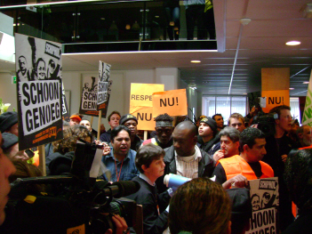 Hoe kijkt Doorbraak aan tegen vakbonden? Vakbonden zijn heel belangrijke organisaties. In een kapitalistische maatschappij is het overgrote deel van de mensen in loondienst, en zonder vakbonden zouden ze elk voor zich overgeleverd zijn aan de grillen van hun bazen. Vakbonden zorgen ervoor dat er collectief gestreden en onderhandeld kan worden over onder meer de arbeidsomstandigheden en de hoogte van de lonen. Eendracht maakt macht. Maar tegelijk zijn vakbonden niet tegen het kapitalisme. Klopt. In het buitenland bestaan er wel bonden die tegen het kapitalisme zijn, maar de grote Nederlandse bonden maken gewoon deel uit van de kapitalistische normaliteit. Ze vormen in de praktijk een onmisbaar onderdeel van moderne kapitalistische economieën. De Nederlandse bonden functioneren als een soort personeelsbeheer van de BV Nederland door loonarbeiders te integreren in het systeem, en hun klachten te kanaliseren richting ‘realistische’ eisen. En daarover kan de vakbondstop dan netjes volgens het poldermodel onderhandelen met de bazen. Net als de sociaal-democratie zijn vakbonden er voor om de scherpe kantjes af te vijlen van de kapitalistische uitbuiting, en tevens van eventueel verzet tegen die uitbuiting. Dat kan doordat vakbonden een bureaucratische top-down structuur kennen en verreweg de meeste leden daarmee weinig moeite lijken te hebben. De meeste leden lijken momenteel weinig behoefte te hebben aan een collectieve strijdpraktijk, en laten het bondswerk liever over aan professionele bondsbestuurders waar ze aan kunnen kloppen voor individuele belangenbehartiging. De bonden zijn wat dat betreft gewoon een afspiegeling van de rest van de maatschappij met zijn verregaande verrechtsing en individualisering. Wat heeft een socialistische organisatie als Doorbraak dan te zoeken bij zulke reformistische vakbonden? Doorbraak ziet de bonden als een enorm strijdterrein dat de meeste linkse activisten veel te lang rechts hebben laten liggen. In de loop der tijd kunnen vakbonden onder invloed van allerlei strijden dan weer wat linkser en dan weer wat rechtser worden, en dat heeft een enorme invloed op de samenleving. Alleen daarom al is het belangrijk dat activisten zich daar roeren. Doorbraak wil dat doen door de strijd van de organizers te steunen. Die proberen namelijk niet alleen de onderkant van de arbeidsmarkt te organiseren, maar vormen tegelijk ook een nieuwe inspirerende kracht binnen de bond zelf. De nog kleine groep strijdbare en sympathieke organizers tast heel voorzichtig van onderop de traditionele witte oudere mannenmacht binnen de bonden aan. En dat is een klein stapje richting wat linksere en strijdbaardere bonden. Deelname aan de organizingcampagne binnen de schoonmaaksector heeft Doorbraak zo een flink aantal waardevolle contacten opgeleverd binnen de bonden, en tegelijk kennis, inzicht en contacten gegeven aan de onderkant van de arbeidsmarkt. Een terrein waar de witte linkse actiebeweging de voorgaande jaren niet bepaald sterk bij betrokken was. En dat allemaal door een bijdrage te leveren aan de succesvolle campagne met de schoonmakers, die voor 150 duizend arbeiders onder meer het uurloon opvijzelde tot 10 euro. Welk belang heeft de vakbondstop dan bij de organizingcampagnes? Vakbonden lopen al heel lang beetje bij beetje leeg, zeker in bepaalde sectoren. Op den duur zullen bonden zo geen vertegenwoordiger zijn van de mensen op de werkvloer. Dat wordt deels veroorzaakt door de gewillige deelname van de vakbonden aan het poldermodel. Nu hebben vakbonden altijd wel nieuwe arbeiders weten aan te trekken, maar dat wordt door de neo-liberalisering en flexilisering van de arbeid steeds moeilijker. De methode van organizing lijkt een goed antwoord te bieden op de nieuwe neo-liberale werkelijkheid. De bondstop heeft gezien dat organizers heel effectief zijn en met hun strijd de bonden doen groeien, juist in die kwetsbare sectoren. Dus daar zien een aantal bestuurders wel brood in. Andere topmensen tonen zich huiverig voor de organizers met hun radicale ideeën van strijd van onderop. Het spanningsveld tussen de bureaucratische bestuurscultuur van de FNV en de autonome werkwijze van de organizers zal blijven bestaan, en zal in de toekomst bij concrete campagnes waarschijnlijk tot conflicten leiden binnen de bond. Doorbraak wil daarbij zijn en solidair aan de kant van de organizers en de mensen op de werkvloer staan. Er zijn wel eens klachten van arbeiders en activisten dat de organizers zelf in de praktijk ook top-down werken. Dat kan ook eigenlijk niet anders. De organizers nemen het initiatief, hebben veel kennis en een gigantische organisatie met veel geld achter zich staan, terwijl de arbeiders die ze benaderen en ideeën aanreiken in veel gevallen nog weinig ervaring hebben bij het organiseren. Natuurlijk is daar sprake van een machtsverschil, en dat zal in concrete gevallen leiden tot minder zeggenschap van de betrokken arbeiders. Maar de methode van het organizen is er juist op gericht om die ongelijke beginsituatie om te draaien, en er mag niet te makkelijk geoordeeld worden over het ontzettend moeilijke werk van de organizers. Het streven naar maximale democratisering van besluitvorming en uitvoering is voor Doorbraak een principieel punt bij alle activiteiten. En dat moet na enige tijd ook daadwerkelijk terug te zien zijn in elke sector waar organizers zich actief inzetten voor de rechten van arbeiders. Het mag dan in de beginstadia moeilijk te verwezelijken zijn, maar er moet in principe altijd naar kritiek geluisterd worden, en er moet altijd de openheid zijn om erover te kunnen praten en te discussiëren, juist ook bij aanvang van het organizingsproces. De organizers waar Doorbraak tot nu toe mee te maken heeft gehad, zijn er in elk geval heel gedreven mee bezig. Het is echter geen makkelijke opgave in deze rechtse tijden om mensen zelfvertrouwen te geven en te trainen in het autonome vakbondswerk. Hoewel in sommige gevallen - bijvoorbeeld bij migranten - aangehaakt kan