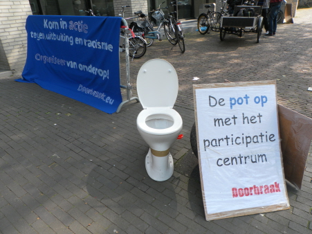 In Leiden zijn er plekken waar je naar toe moet vanwege je uitkering. Zoals: “Werkplein”, “Servicepunt Werk en Inkomen”, “Participatiecentrum”, “Startwerklocatie”, “Transfercentrum”. Wat is dat toch allemaal? Nou, in het Participatiecentrum moet je dwangarbeid doen. Dat is ons woord, niet van hen. Je moet onder dwang werken, gratis, zonder rechten. Wie niet werkt, zal niet eten. Dat proberen ze je in te prenten. Maar de overheid heeft een heleboel woorden verzonnen om het mooier te laten klinken dan het is.