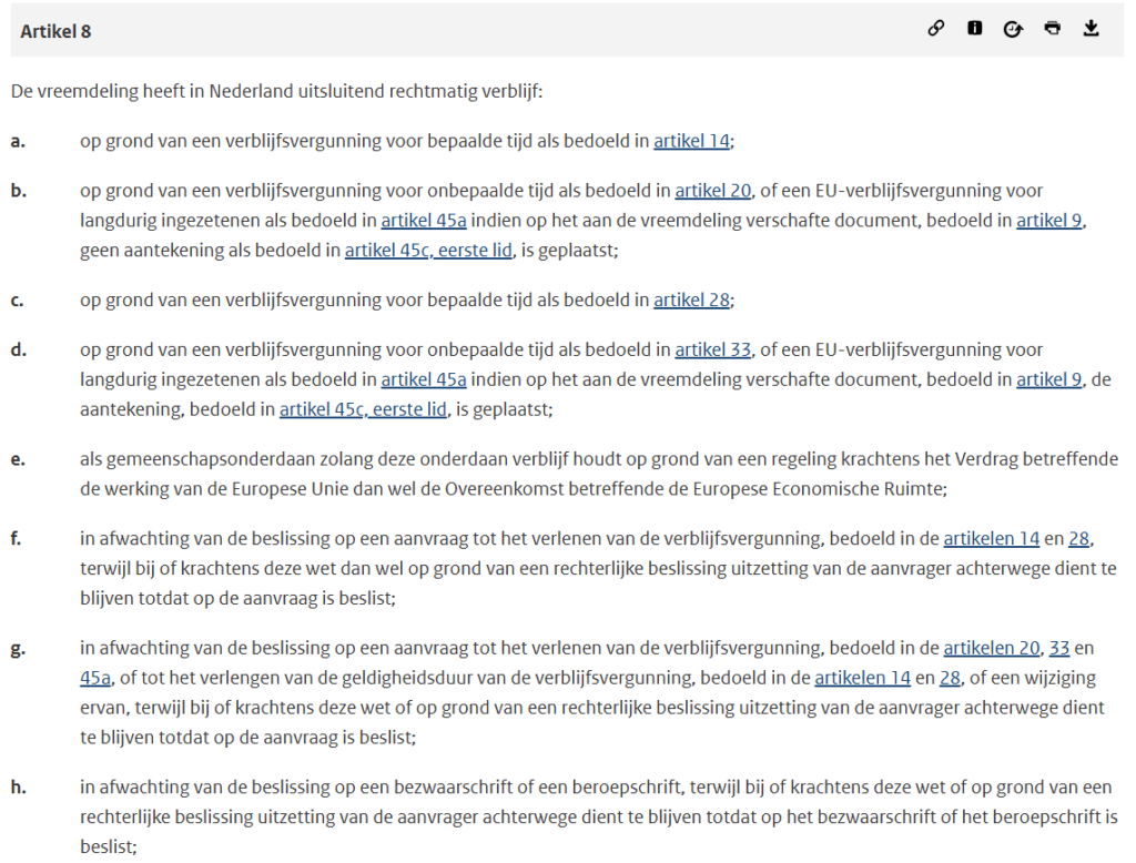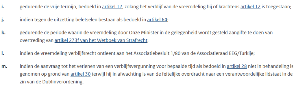 De geldige verblijfstitels staan in artikel 8 van de Vreemdelingenwet 2000. In de praktijk zal het gaan over mensen die afgewezen zijn en waarvan de procedure is afgelopen. Of mensen die nooit een verblijfsvergunning hebben aangevraagd, of van wie hun verblijfstitel om wat voor reden dan ook is verlopen (zoals bij arbeidsmigranten die zijn ontslagen). Daarnaast is er ook een groep mensen die nog wel in procedure zijn, maar die procedure niet in Nederland mogen afwachten.