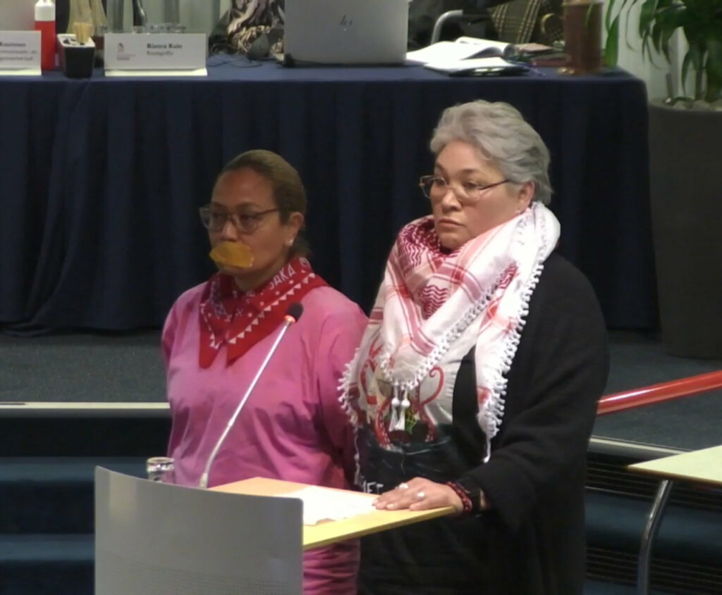 Voorafgaand aan en tijdens de Hoornse raadsvergadering van gisteravond mocht Enseline, nazaat van slachtoffers van de genocidepleger Jan Pieterszoon Coen, niet inspreken en niet haar mening geven over de toekomst van het standbeeld van Coen op het plein De Roode Steen in Hoorn. Uit protest plakte ze tijdens de vergadering haar mond dicht met tape. Ze kreeg geen gelegenheid om de onderstaande tekst van haar speech uit te spreken. Daarom publiceren we die hier.