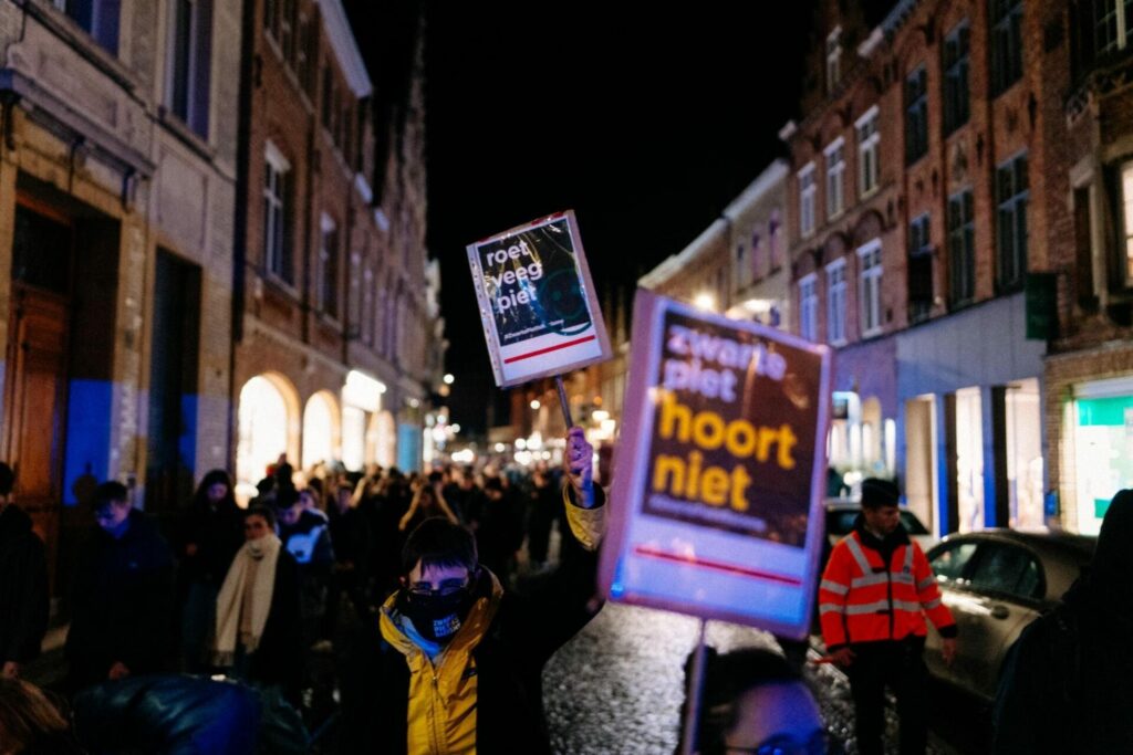 Het verboden protest tegen Zwarte Piet in het Belgische Ieper ging toch gewoon door