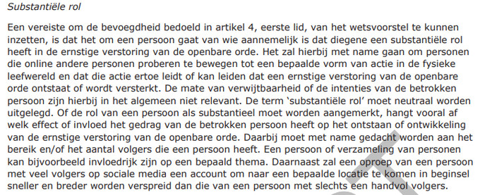 Daarbij komt kijken dat een “substantiële rol” ook heel snel wordt aangenomen. Mensen die oproepen mee te doen aan een bepaalde actie kunnen dus ook al onder de reikwijdte van het onderzoek vallen. Dit is nauwelijks een beperking van de bevoegdheid.