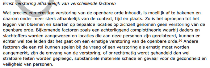 Ook hoeft het niet om een groep te gaan. Blijkbaar kan ook één persoon een “ernstige verstoring” veroorzaken. Dit wordt later nog relevant.
