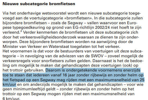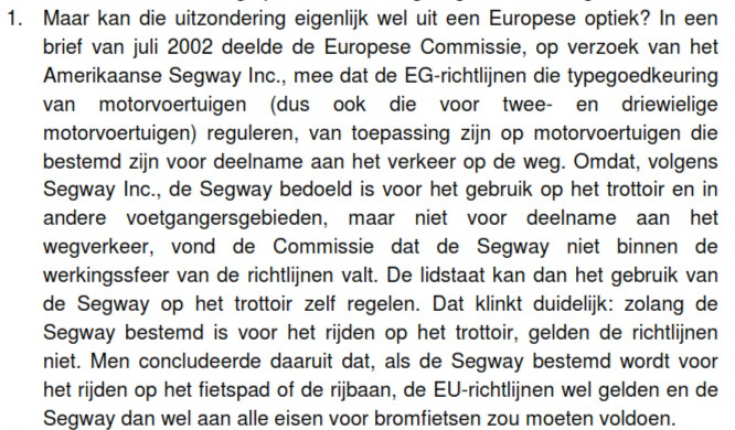 Het was lobby vanuit het Amerikaanse bedrijf Segway Inc. die het uiteindelijk mogelijk maakte dat Nederland eigen regels zou maken over “bijzondere bromfietsen”. De details zijn complex, maar het komt erop neer dat de EU toestemming gaf.