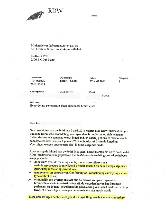 De RDW waarschuwt overigens in april 2011 al dat hun controle zeer beperkt is. Zo mogen ze geen “Conformity of Production” controleren: of de geproduceerde modellen wel voldoen aan de kwaliteitsmaatstaven.
