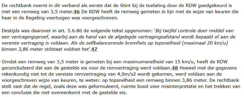 Wat later ook zou blijken (blijkt uit de uitspraak) is dat de RDW de remweg verkeerd had gemeten. De remweg was eigenlijk te lang, maar door een verkeerde berekening nam de RDW dat niet mee in het eindoordeel, dat alsnog negatief was.