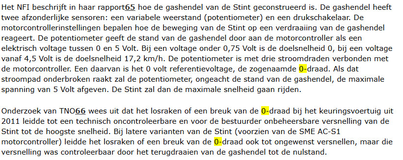 De 0-draad is een stroomdraad die een sensor (de potentiometer) een referentie geeft voor 0 volt. Als die 0-draad brak, gaf de potentiometer altijd 5 volt als output. De motor kreeg dan de opdracht om op volle snelheid te komen. Dit kon alleen worden hersteld door het contact uit te zetten.