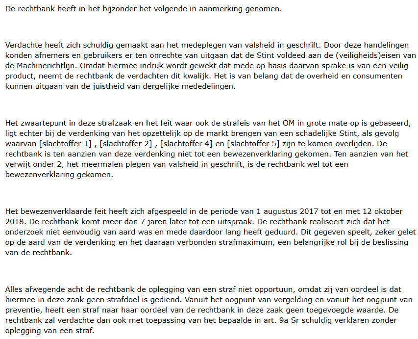 Voetnoot: er zijn wel meer mensen verrast door deze uitspraak getuige dit artikel in het AD: “‘De Stint sloeg binnen een uur op hol’ Professor uit Enschede geschokt over vonnis na dodelijk drama”.