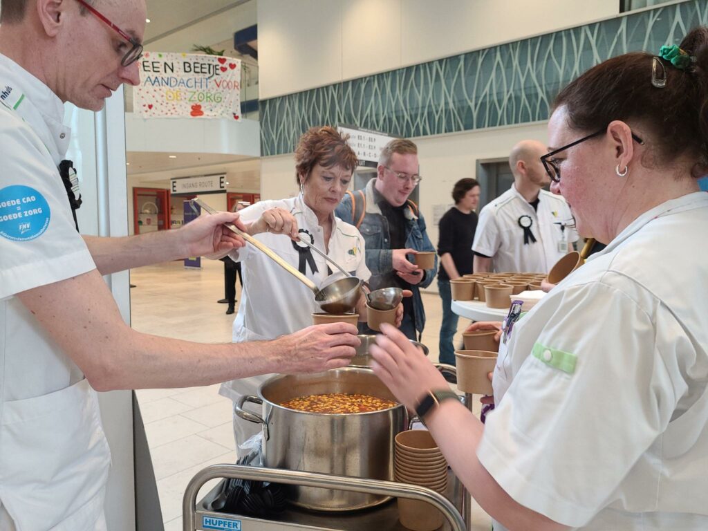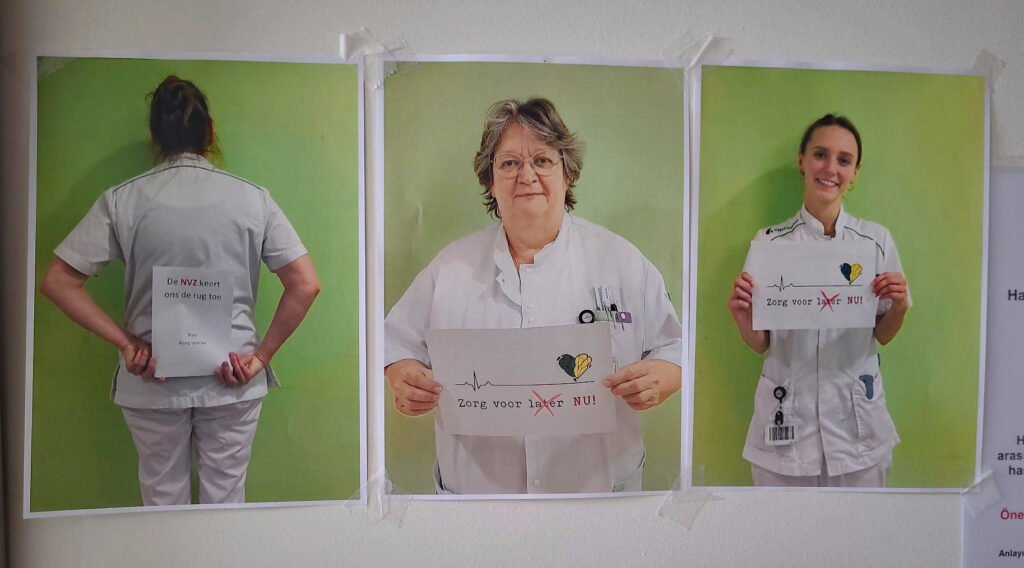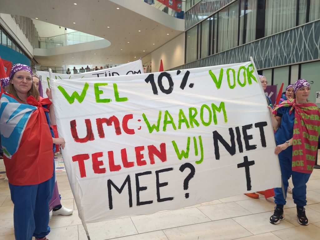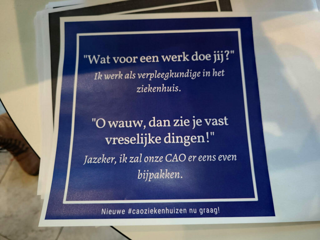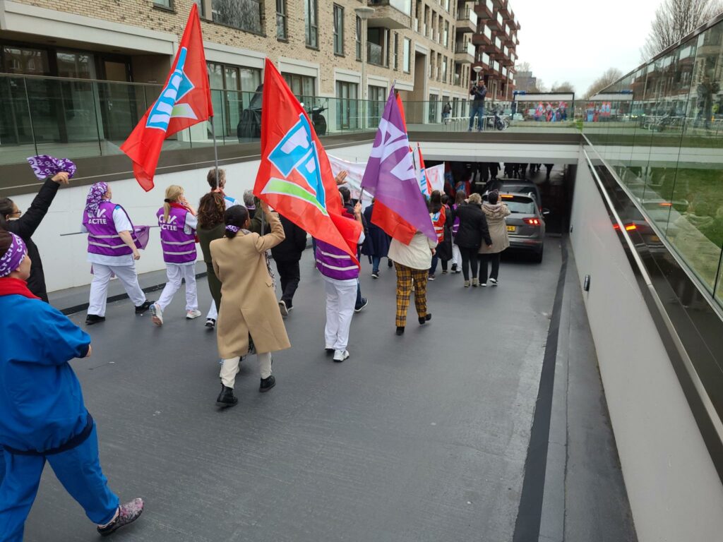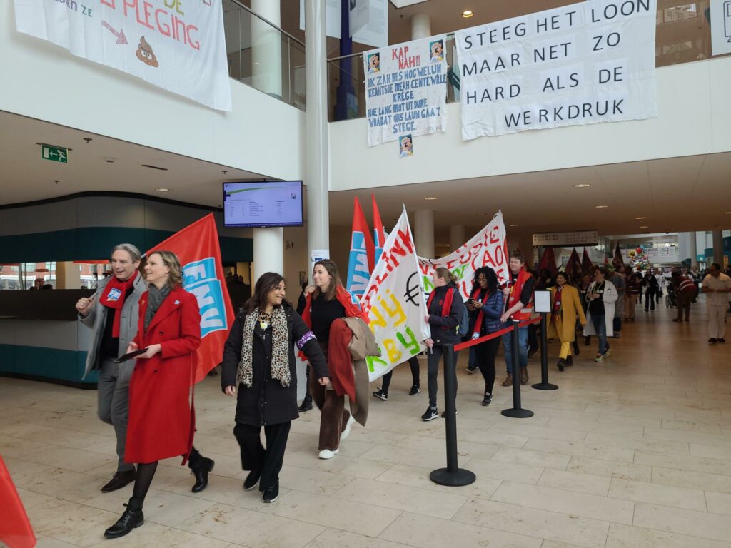 We zijn nu drie jaar verder. De onderhandelingen voor een nieuwe zorg-cao tonen aan dat de ziekenhuisbazen de zorgwerkers zo onfatsoenlijk mogelijk aan het afknijpen zijn. De bazen tellen de centen die hun medische winstfabrieken moeten opleveren, en proberen met man en macht om de loonkosten van hun personeel zo laag mogelijk te houden. De woede en actiebereidheid onder de zorgwerkers is groot, en dat leidde vandaag tot een stakingsdag onder regie van met name de vakbonden FNV en CNV. Inzet van de staking: het forceren van een doorbraak in de cao-onderhandelingen. En als dat niet mocht lukken, dan zouden er nieuwe acties gaan komen.