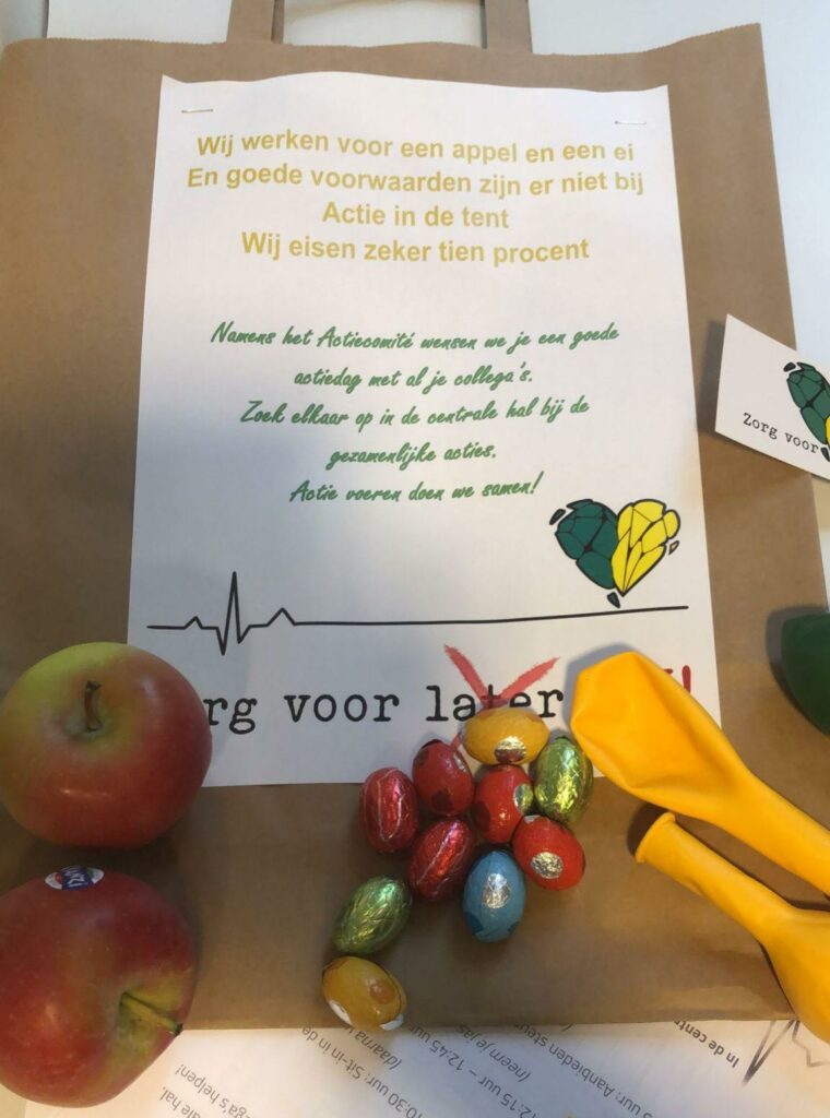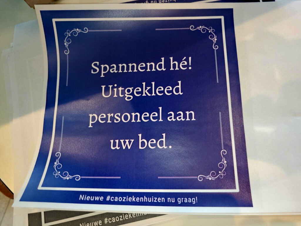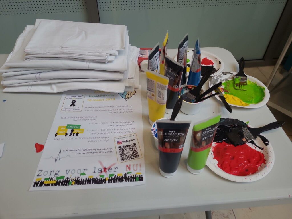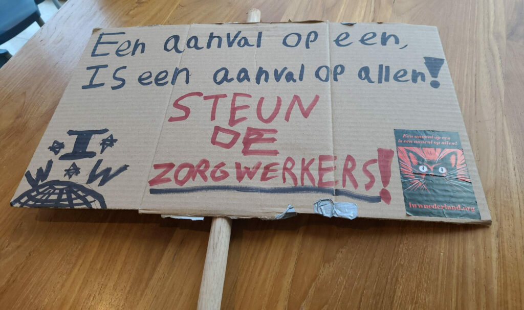 Opvallend is verder dat de stakingsactie van vandaag voor het grootste deel werd gedragen door de zorgwerkers zelf. De vakbonden coördineerden de actie weliswaar, maar zonder het bestaan van actiecomités van zorgwerkers was een landelijke staking in 64 ziekenhuizen tegelijk sowieso ondenkbaar geweest. In het Haga-ziekenhuis waren de meeste spandoeken en ander actiemateriaal gemaakt door de zorgwerkers, niet door de bonden. Dat deden de zorgwerkers tijdens hun nachtdiensten of na hun werk.