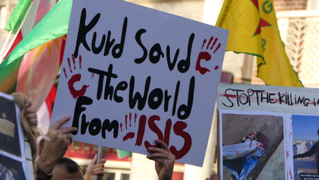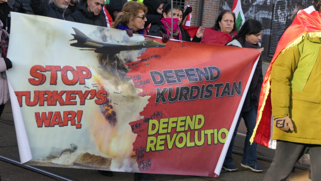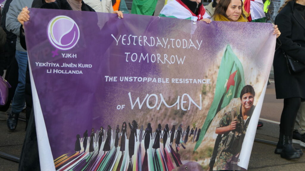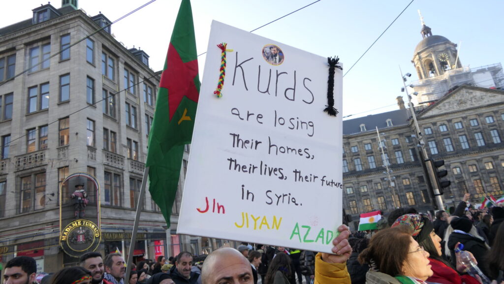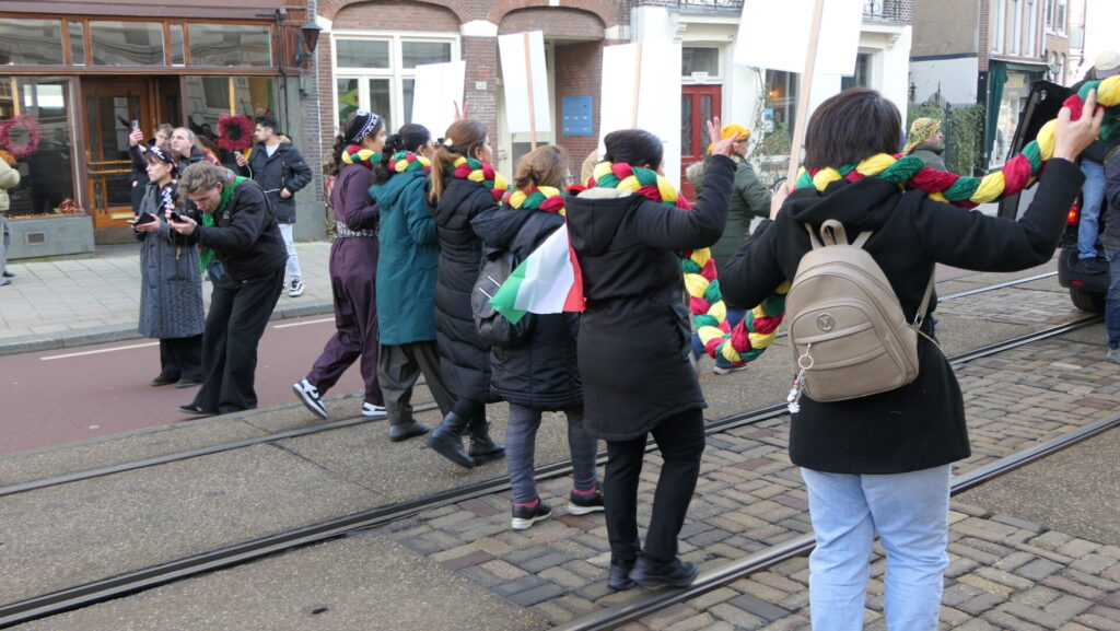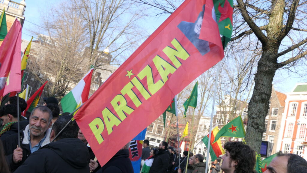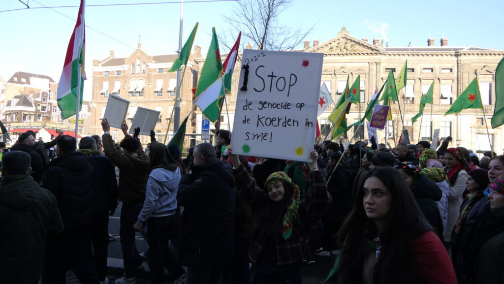 Vandaag deden een paar duizend mensen mee in Amsterdam aan de uiterst strijdbare demonstratie voor een vrij Rojava, het gebied in Noordoost-Syrië dat momenteel aangevallen wordt door de fundamentalistische milities van de Hiyat Tahrir-es Sham (HTS) en aanverwante jihadistische groeperingen. Die worden daarbij gesteund door de Turkse regering.