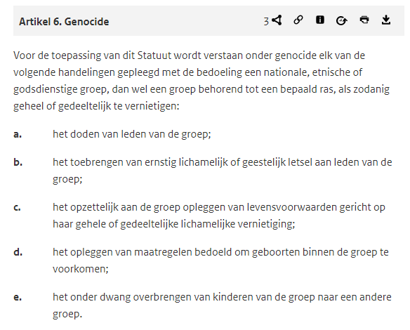 Vooraf een content warning: dit artikel gaat over genocide en de jurisprudentie daarover. Meerdere genocides, met omschrijvingen, komen aan bod. Dit artikel is ook niet genoeg om zo’n complexe zaak definitief te beantwoorden. Ik wil vooral laten zien wat het juridische frame is.