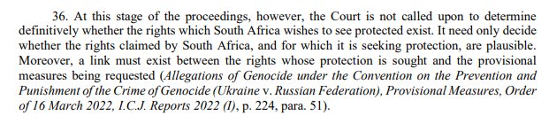 Hij maakt misbruik van het feit dat veel mensen onbekend zijn met het procesrecht bij het Internationaal Gerechtshof. Het Gerechtshof mag in dit stadium, namelijk een verzoek om voorlopige maatregelen, geen einduitspraak doen. Met andere woorden, het Internationaal Gerechtshof mag nog niet spreken van genocide.