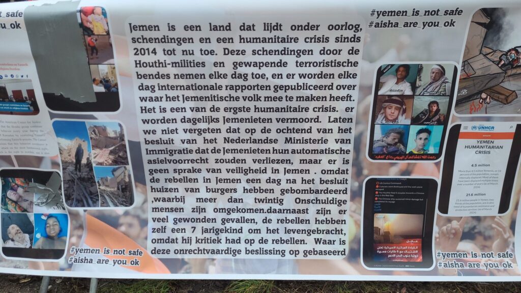 Wij zijn naar Nederland gekomen omdat wij niet veilig waren in Jemen. Niet omdat wij dat wilden, maar omdat wij daartoe waren gedwongen. Jemen is geen veilig land. Er is oorlog, geweld, willekeurige arrestaties, gedwongen rekrutering, honger en de volledige ineenstorting van de staat. Dit is geen mening, dit is de realiteit.