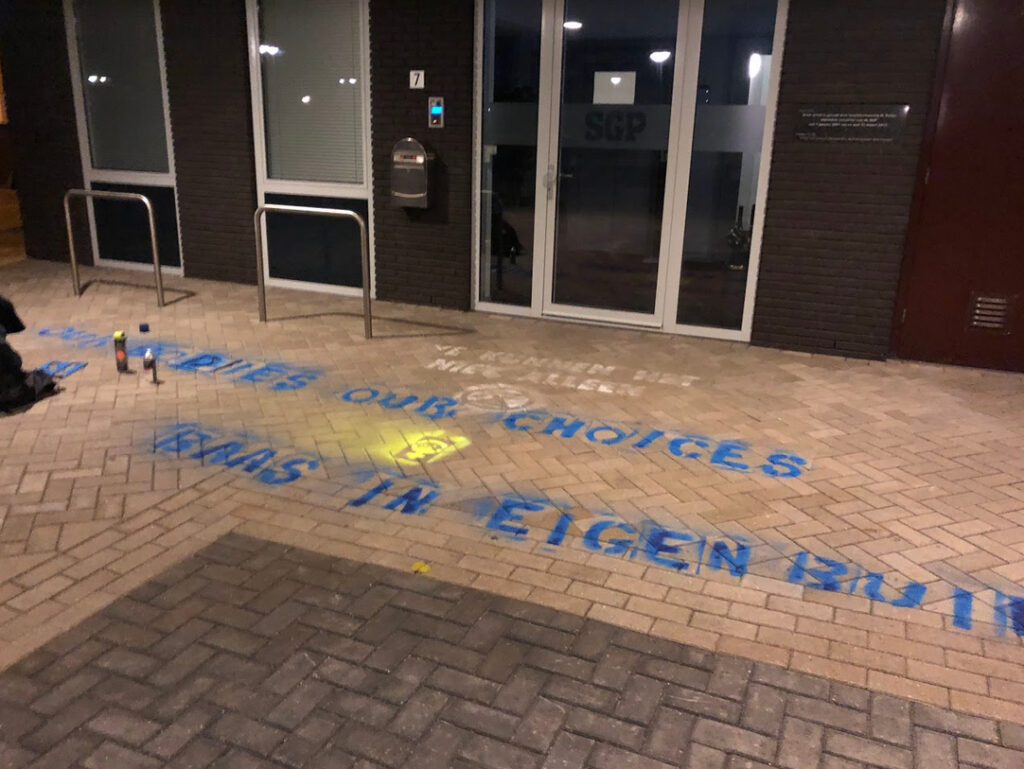 Vanochtend vroeg gingen verschillende activisten de straat op om de boodschap te verspreiden met (krijt)spray dat abortus niet een meningsverschil is zoals @sterreclame recentelijk claimde. Want zoals we hebben gezien in Polen kost een gebrek aan gratis en veilige toegang tot legale abortus levens. Onze veiligheid is geen mening, maar hoort gegarandeerd te zijn. We zijn hierin solidair met de demonstraties in Polen en willen onderschrijven dat de anti-abortus beweging niet op zichzelf staat, maar hand in hand gaat met extreem-rechts gedachtegoed. Daarom vonden vanochtend plekken variërend van @schreeuwomleven, de Poolse ambassade, @cdavandaag en @sgpnieuws onze eisen op hun stoep: de garantie van veilige en gratis toegang tot legale abortus, lgbtq-rechten en een veilige doorgang voor vluchtelingen wereldwijd #anijednejwiecej #notonemore #safetyisnotanopinion #abortionsaveslifes #abortusredtlevens #otwierajciegranice #opentheborders Deze actie is gefaciliteerd door @wondacollective. Dit collectief wordt gerund op een vrijwillige basis en is afhankelijk van maandelijkse donaties. De actiegroep is momenteel ook bezig om fondsen te werven voor @abortion_network_amsterdam die mensen helpt die ongewenst zwanger zijn, uit bijvoorbeeld Polen, om in Nederland een veilige abortus te ondergaan. Dus blijf op de hoogte! Doneren kan alvast hier.