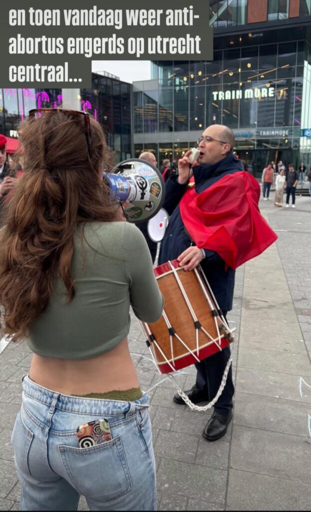 Het is al de middag erna, maar ik voel me nog steeds een beetje overweldigd door de gebeurtenissen van gisteren aan het einde van de middag voor de ingang van het Leidse Centraal Station. Ik loop al een poosje mee, maar zo’n massaal spontaan protest heb ik eigenlijk niet eerder meegemaakt. Een groepje van tien katholieke fascisten stond met een trommel, doedelzak, spandoek en flyers actie te voeren tegen vrije abortus. Maar een flinke menigte maakte hen duidelijk dat aan dat recht niet getornd mag worden. En dat ze al helemaal niet welkom zijn een dag na de internationale vrouwendag!