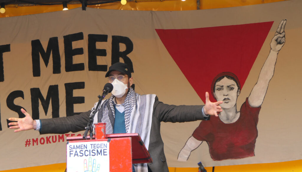 Hoe zijn we hier beland? Dat wij hier op een zondagmiddag in Amsterdam moeten demonstreren omdat er nazi’s over straat lopen? Niet alleen hier, maar ook in Schiedam, in Amersfoort, ook in andere steden in Nederland. Dat is een levensgevaarlijke ontwikkeling.
