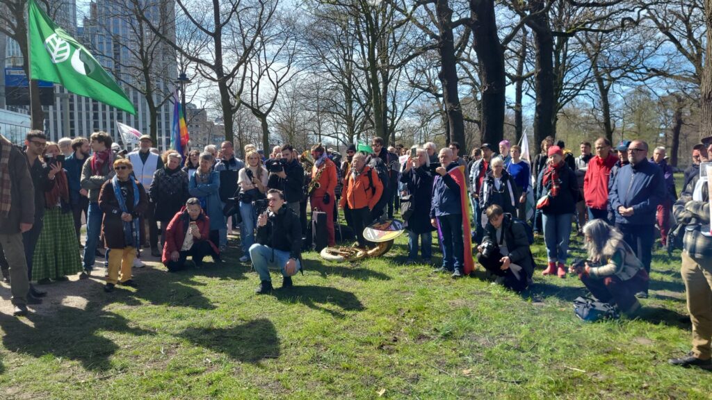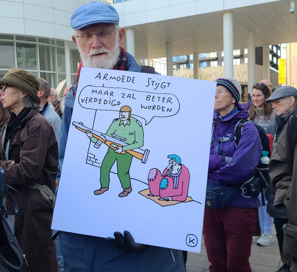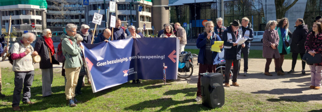Gisteren deden in Den Haag zo’n honderd mensen mee aan de demonstratie “Geen bezuiniging voor bewapening!”, die was georganiseerd door de Nieuwe Vredesbeweging. De actie begon in het centrum van de stad en eindigde aan de Bezuidenhoutseweg 161, bij de Nederlandse Industrie voor Defensie en Veiligheid (NIDV), de lobby-organisatie van de wapenindustrie. Een van de sprekers tijdens de demonstratie was Mark Akkerman, actief bij Stop Wapenhandel. Hij waarschuwde voor de dreigende invoering van de Wet op de defensiegereedheid (lees: oorlogsgereedheid). Dat wetsvoorstel is een van de middelen in handen van de regering en in het bijzonder het ministerie van Defensie om oorlogsvoorbereiding gemakkelijker te laten verlopen, ten koste van mens, dier en natuur. Hieronder de tekst van zijn speech.