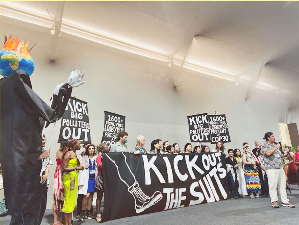Al tientallen jaren waarschuwen zwarte en bruine landen – waaronder die in het Caribische gebied – dat de klimaatcrisis voor hen geen abstract toekomstbeeld is, maar een levende werkelijkheid. Van de eilanden in de Stille Oceaan tot de Sahel, van de Filipijnen tot Palestina: het zuiden van de wereld heeft al zo lang de alarmklok geluid, zelfs nog voordat het in de mode raakte om te spreken van een “klimaatcrisis”. Maar zelfs nu wereldleiders elk jaar bijeenkomen onder de vlag van COP, blijven de resultaten uit. Rampzalig! Organisatoren van de volgende COP zullen vast weer opnieuw inheemse leiders uitnodigen om welkomstrituelen uit te voeren, jonge activisten zullen zich ongetwijfeld opnieuw laten fotograferen met inheemse oerwoudbewoners voor gelikte campagnes en camera’s zullen beslist nogmaals de smeekbeden van kleine eilandstaten filmen. Wat is er na dertig COPs nu echt veranderd? De uitstoot blijft stijgen, subsidies voor fossiele brandstoffen blijven bestaan en dezelfde bedrijven die profiteren van de vernietiging van de planeet, sponsoren de onderhandelingen die bedoeld zijn om hun verwoesting te stoppen. Het theater van “inclusie”, van gelijke rechten voor achtergestelde groepen, is eigenlijk bedoeld om de status quo, de bestaande situatie, te behouden die gebaseerd is op uitsluiting.