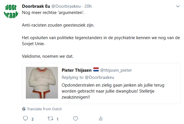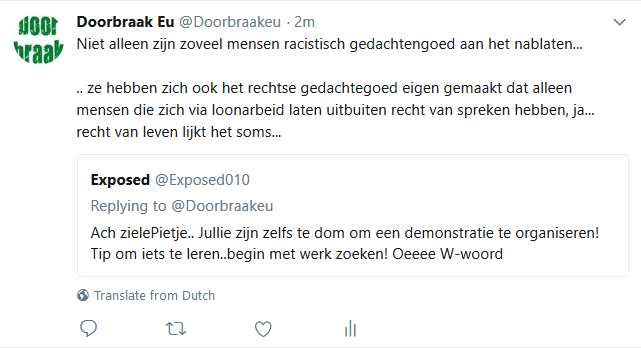 De botte agressiviteit druppelt van het gezicht van die gast boven op de foto. Hij voelt zich zeker gesteund door het passiviteit van de Nederlandse politie die rechts-extremisten altijd liever hun gang laat gaan, terwijl bezig vreedzame progressieve betogers gewelddadig op te pakken omdat ze ergens staan. zonder dat ze de algemene orde doen verstoren.