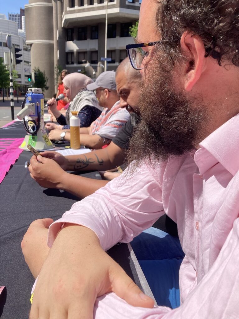 We are happy to join our partners in the fight against destruction of what we hold dear. That is why next Wednesday we will call the government to account before the eyes of the world and will peacefully block the A12 until the three demands are met: stop genocide, stop racism and fascism, stop fossil destruction.