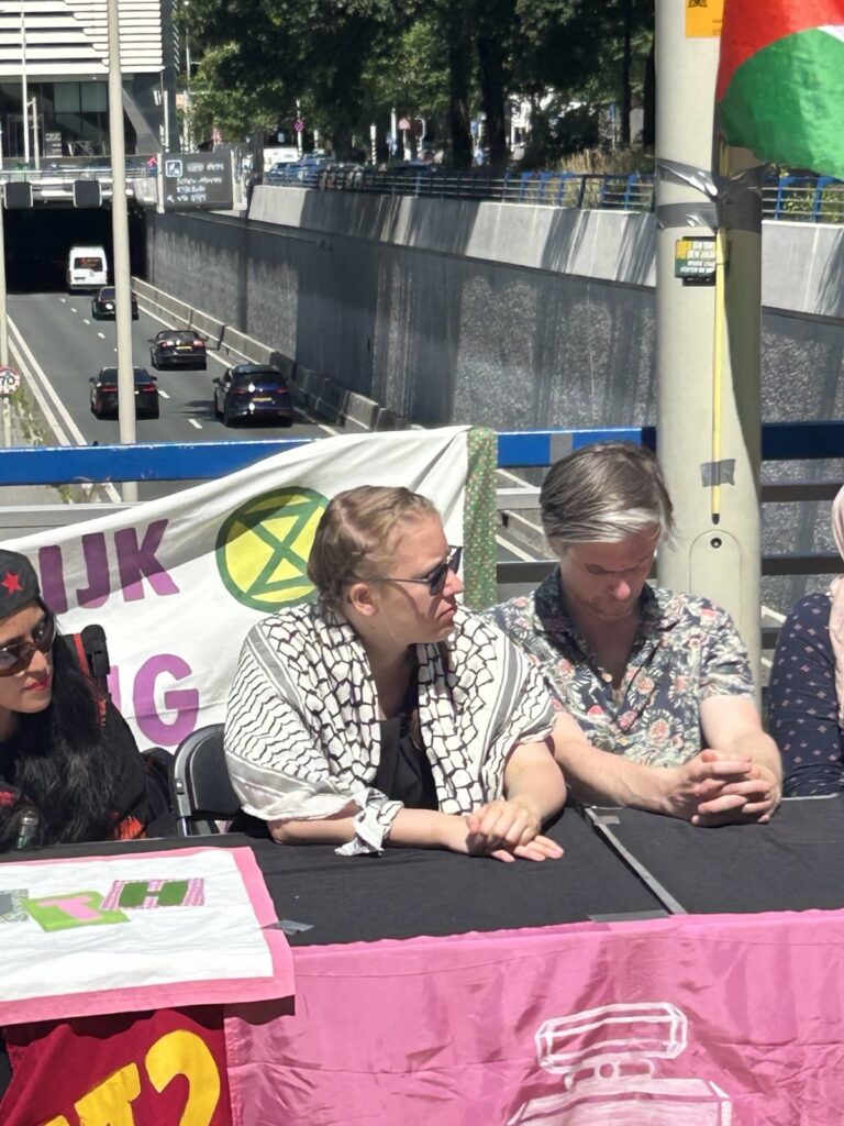 Today, a coalition of organisations held a press conference on Extinction Rebellion’s A12 blockade during the NATO summit. It took place over the A12 in The Hague, at the intersection of Theresiastraat and Prins Clauslaan. As international press was also present, they used English as the language of communication. Here are the speakers’ statements (also see the video below).
