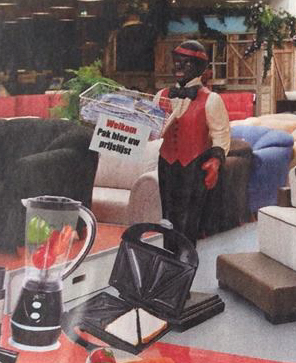 - Bezoek filialen van het bedrijf, maak foto’s van racistische karikaturen en verspreid die foto’s. Een overzicht van de filialen van Seats and Sofas vind je hier. Mail de foto’s ook naar Drie Dwaze Weken.