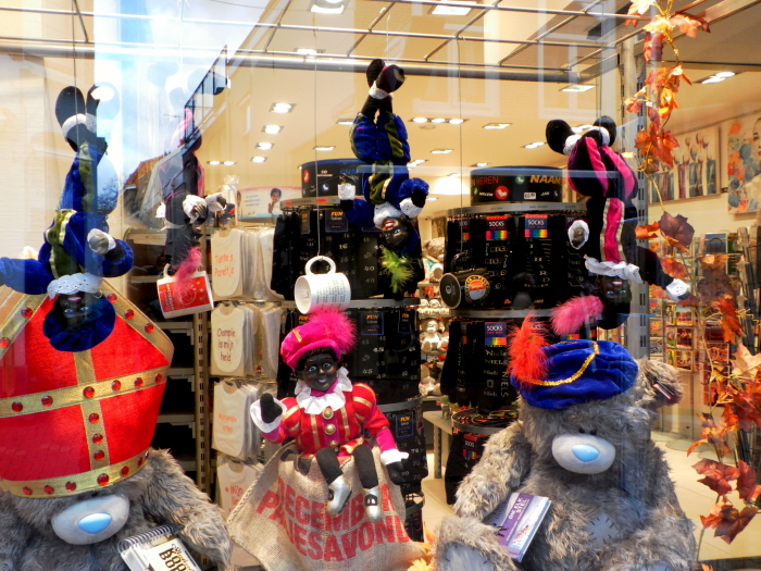 Dit jaar kwam Jumbo onder vuur te liggen, toen bleek dat er naast Zwarte Pieten ook Witte Pieten op de verpakking van eigen merk-producten zouden komen te staan. Zelfs als winkelbedrijven de Zwarte Piet-figuur dus handhaven en slechts een Witte Piet-figuur als tweede variant erbij nemen, breken hele volksstammen blackface-fans de tent al af. Zo kleinzielig en pietluttig is namelijk de houding van de gemiddelde pietofiel. “Jumbo is er voor iedereen”, laat een woordvoerster van Jumbo weten. “We beschouwen het Sinterklaasfeest als het leukste feest van het jaar voor onze kinderen. In de discussie rond Zwarte Piet lijkt het moeilijk een oplossing te vinden waarmee iedereen tevreden is.” Met andere woorden: het gebruikelijke pappen en nathouden aan de hand van het poldermodelstramien blijkt deze keer niet echt te werken. Dat heeft ertoe geleid dat de meeste winkelbedrijven zich gedeisd houden en zich voorzichtig opstellen. Daar hoort bij dat men er meestal maar vanaf ziet om de winkeletalages prominent in te richten met het Zwarte Piet-racisme.
