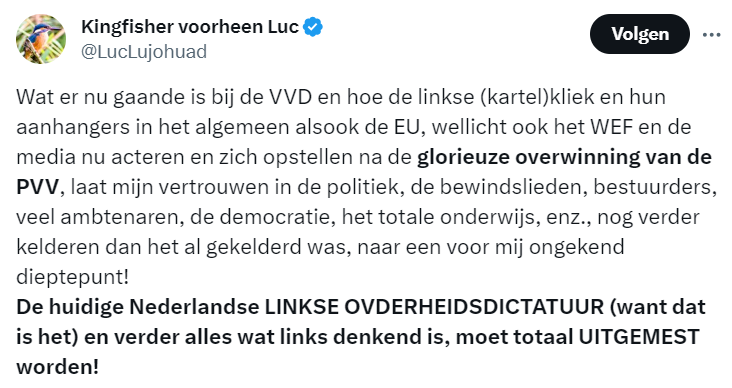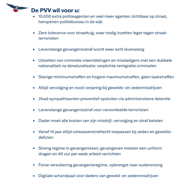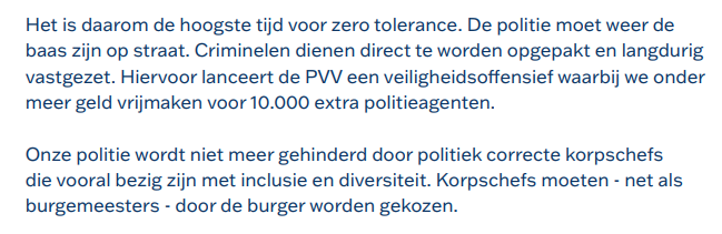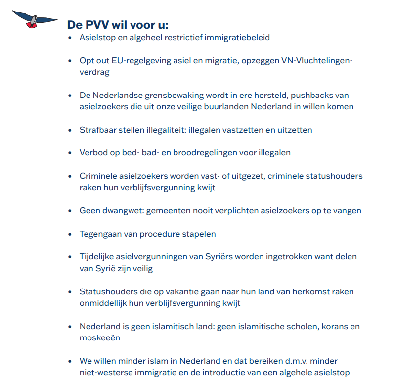Ditmaal een voorbeeld uit het programma: verbod op korans en moskeeën en “niet-westerse” buitenlanders geheel uitsluiten. Om maar te zwijgen van de vervolging van trans mensen. Angst is de basis van het gehele PVV-programma.