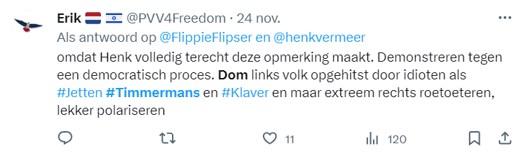 Je hoeft niet ver te gaan om PVV de term “landverrader” te zien gebruiken. Deze term geldt voor politici die niet doen wat zij willen, onderzoekers die een kritisch onderzoek doen, en iedereen die in de laatste week tegen een kabinet-Wilders heeft gedemonstreerd.