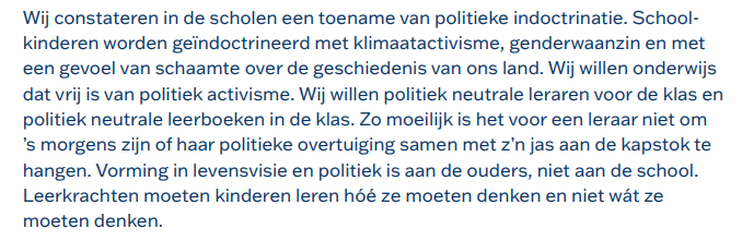 Moeten hiervan voorbeelden worden gegeven? De angst van ontmannelijking zit in het hele programma. Angst voor “genderwaanzin”, voor “schaamte over de geschiedenis”.