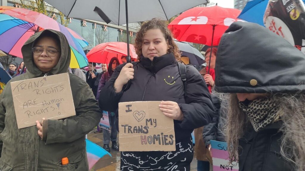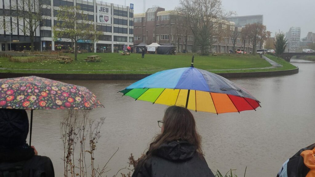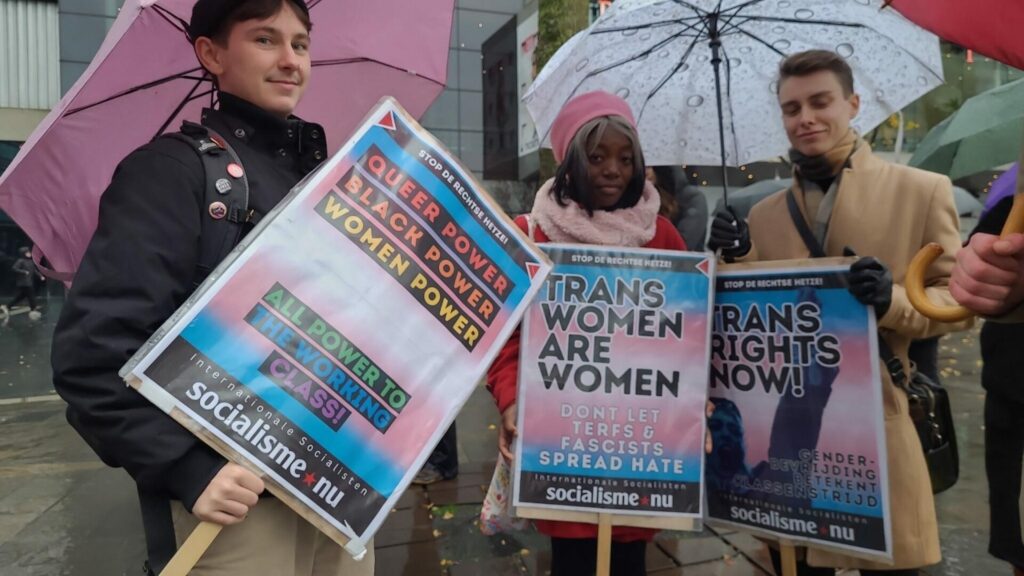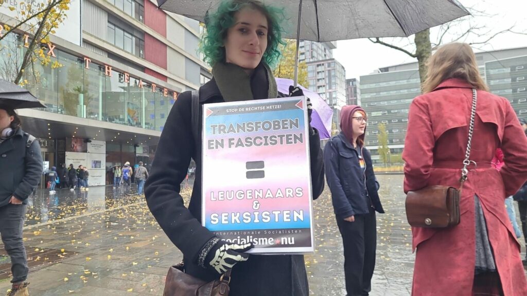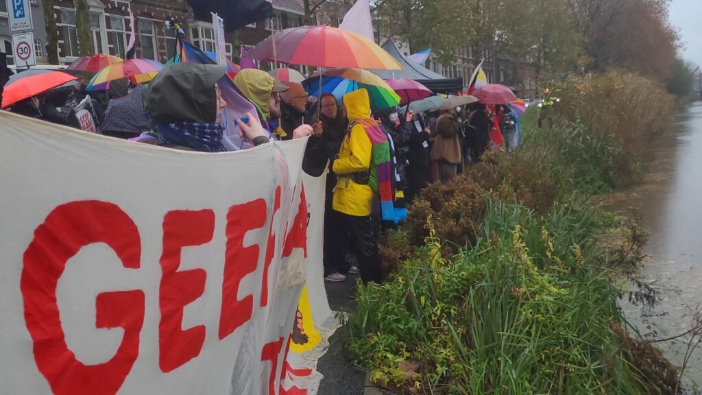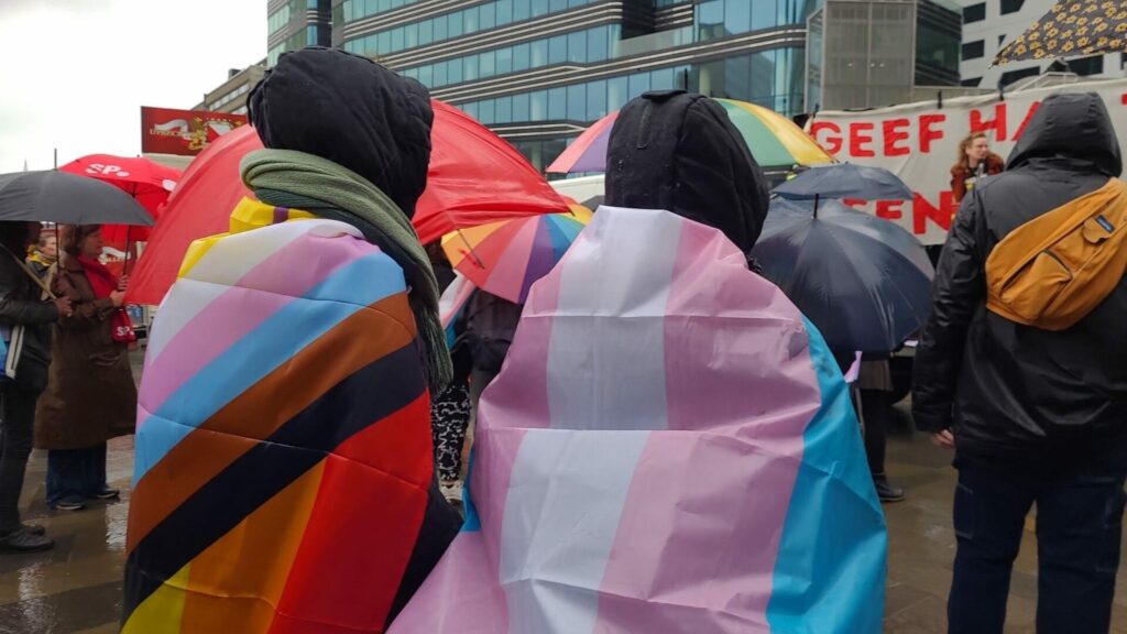 Gisteren vonden er in Utrecht twee protestacties plaats tegen een bijeenkomst van de trans haters van Voorzij en hun extreem-rechtse vrienden. Meer dan honderd mensen met spandoeken, vlaggen en borden namen deel aan de acties, waarmee ze veruit in de meerderheid waren ten opzichte van de terfs (trans-exclusionary radical feminists) die zich verscholen in een tent in het park Paardenveld. Ondanks de aanhoudende regen en ondanks de forse tegenwerking van de politie slaagden strijdbare queers en hun solidaire bondgenoten erin om een krachtig en inspirerend tegengeluid te laten horen.