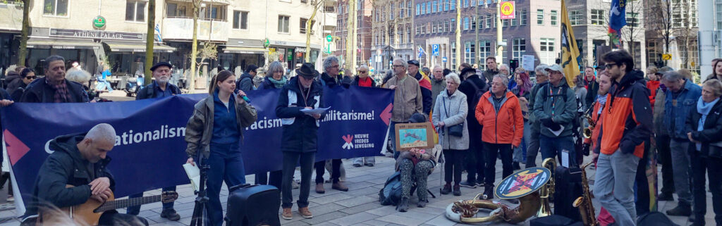 Gisteren deden in Den Haag zo’n honderd mensen mee aan de demonstratie “Geen bezuiniging voor bewapening!”, die was georganiseerd door de Nieuwe Vredesbeweging. De actie begon in het centrum van de stad en eindigde aan de Bezuidenhoutseweg 161, bij de Nederlandse Industrie voor Defensie en Veiligheid (NIDV), de lobby-organisatie van de wapenindustrie. Sanny van de Revolutionair Socialistische Partij (RSP) hield er een gloedvol betoog: we moeten niet alleen demonstreren, maar ons ook organiseren! Hier de tekst van de speech.