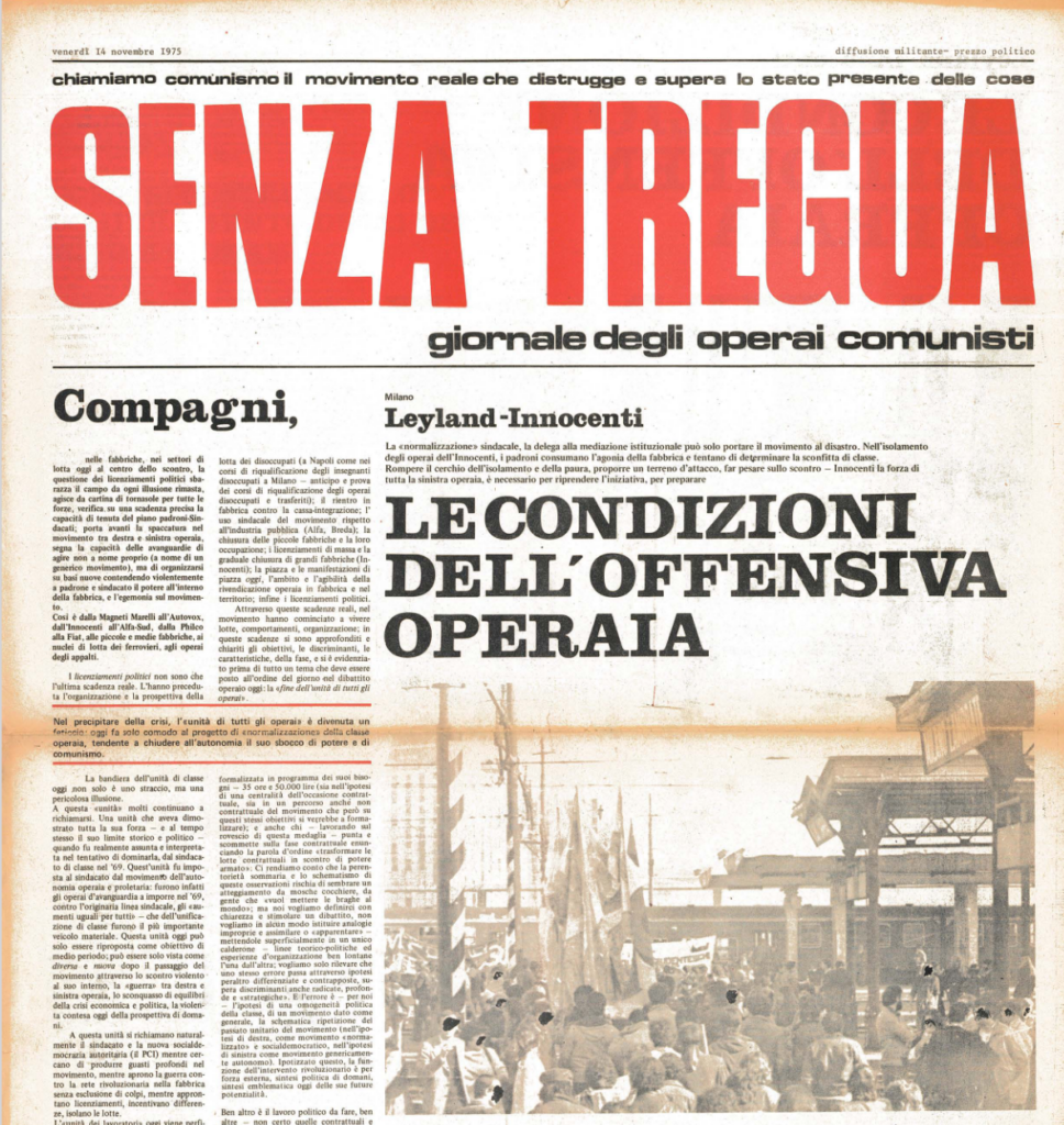 – Senza Tregua – Politieke arbeiderscomités en geweld in Italië 1973-1976 – Lessen voor vandaag