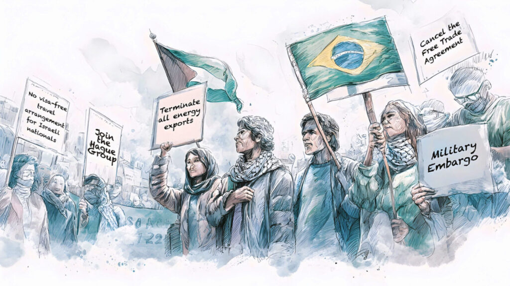 Al decennialang werken het Braziliaanse militair-industriële complex, de agro-industrie, rechtse politici en evangelisch-zionistische lobbygroepen samen om de banden tussen Brazilië en Israël te versterken. Zij praten de handel met Israël goed onder het mom van “technologische partnerschappen” en “klimaatvriendelijke landbouw”, en leiden zo de aandacht af van de misdaden van het Israëlische regime.
