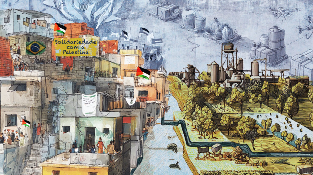 De solidariteitsbewegingen in Brazilië zijn vaak ontstaan in de favela’s (arme wijken in de grote steden), en zij komen voort uit organisaties voor betere huisvesting en klimaatrechtvaardigheid, en tegen wanbeleid van bedrijven, en uit studentenverenigingen, vakbonden en organisaties van landloze kleine boeren. Zij hebben belangrijke campagnes gevoerd, waarin zij verbanden legden tussen het militarisme van Israël en het staatsgeweld, de aantasting van het milieu en de grootschalige chemielandbouw in Brazilië zelf. Door de genocide in Gaza en door de steeds verdere uitbreiding van de Israëlische nederzettingen op de Westelijke Jordaanoever is het dringend noodzakelijk geworden om de medeplichtigheid van de Braziliaanse overheid en het bedrijfsleven aan het licht te brengen. Ondertussen zijn ook de gewone kranten en televisiezenders door alle verschrikkelijke beelden op de sociale media van de genocide meer aandacht gaan besteden aan het bittere lot van de Palestijnen.