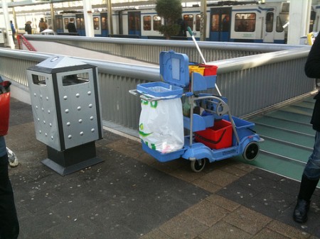Direct na onze oproep om foto’s van de rommel op stations en in treinen ontvingen we van Dirk Kloosterboer al opvallend materiaal dat laat zien dat schoonmaakbedrijf CSU gewoon doorwerkt op station Amsterdam Amstel. De eerste twee foto’s zijn van zondag 28 februari 2010, de andere twee van vandaag, maandag 1 maart. En dan nog een actiemogelijkheid voor sympathisanten. Wil je de stakers steunen? Stuur dan een kant-en-klare E-card naar Anton Witte, de onderhandelaar namens de bazen.