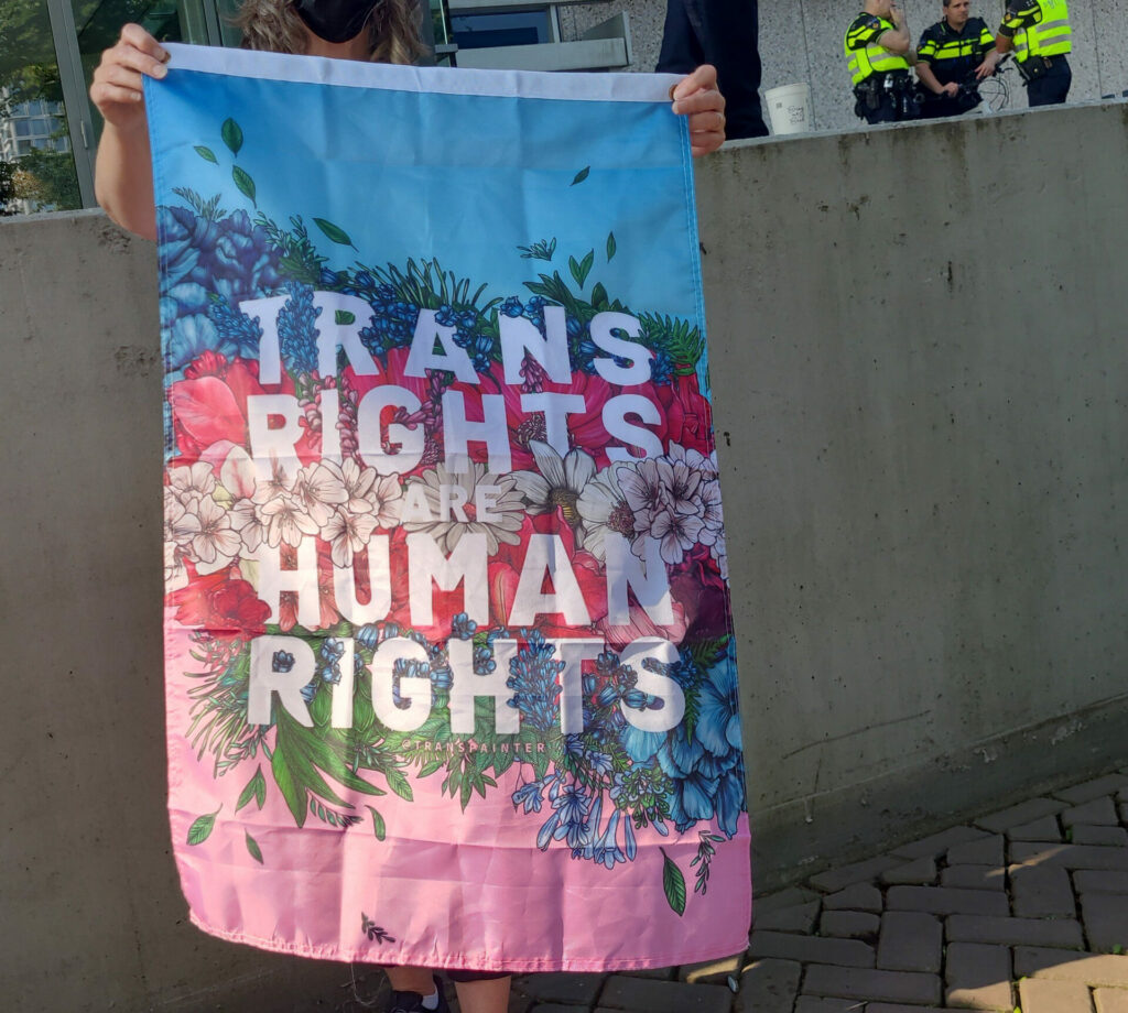 Helaas kwam een pipo van PowNed weer vervelend doen door met die beruchte roze microfoon te lopen provoceren, in de hoop een relletje te kunnen veroorzaken. Maar daarin slaagde hij niet, want hij werd voortdurend omringd door een heleboel trans mensen die het hem onmogelijk maakten om te filmen en te interviewen. Uiteindelijk werd de lastpost weggestuurd, gelukkig voordat een spreker aan het woord kwam die niet gefilmd en gefotografeerd wilde worden en die aan het zicht werd onttrokken met het spandoek dat aan het podium hing.