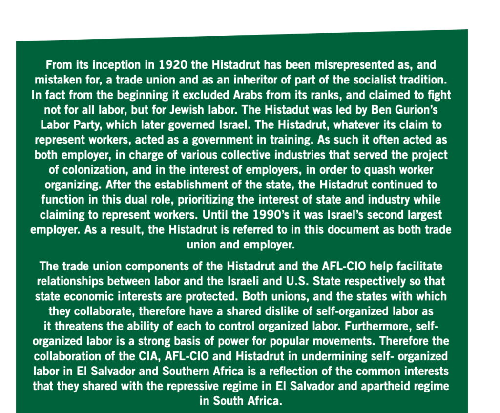 En later in de zine is er een speciaal kader gewijd aan de Histadrut: