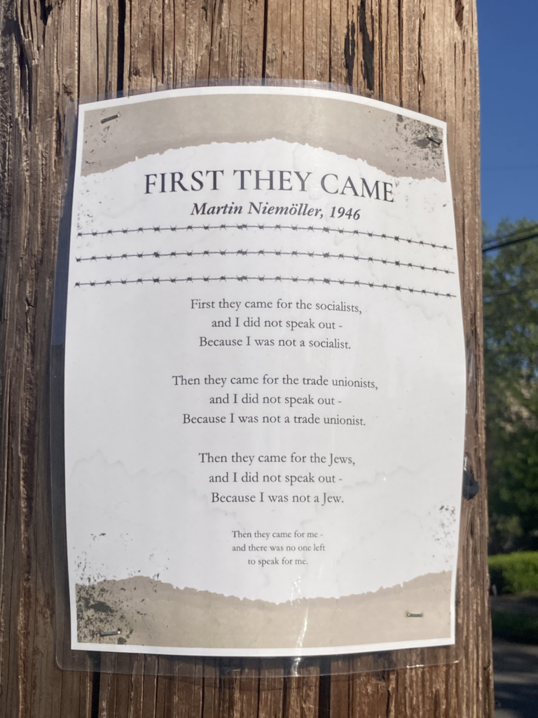 Bij mijn kinderen voor hun school hangt een stencil met het befaamde gedicht van de Duitse pastoor Martin Niemoller: