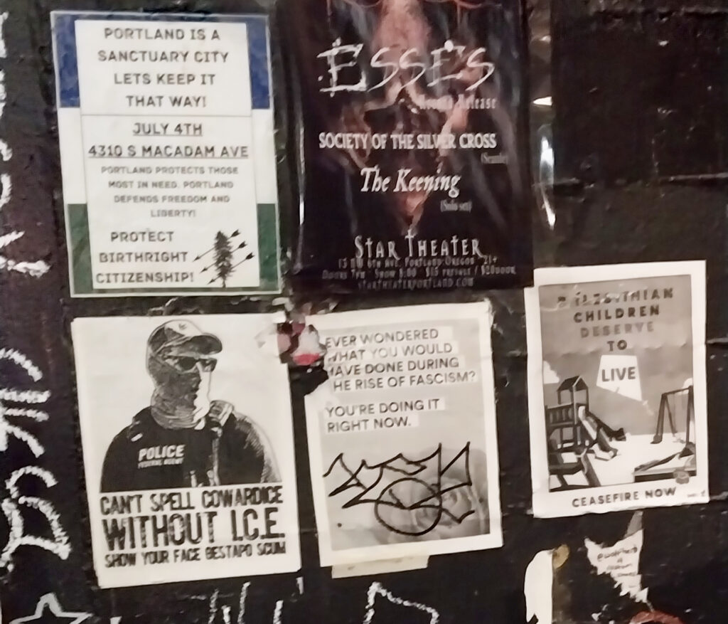 De VS zijn verder afgegleden naar een autoritaire staat. Het begon met het sturen van de Nationale Garde naar Los Angeles door Trump, om ICE te ondersteunen. Of misschien begon het toen hij ICE naar Californië stuurde om het aantal deportaties op te voeren. De gemaskeerde ICE-agenten werden de Latino-gemeenschappen ingestuurd om migranten op te pakken op boerderijen, textielfabrieken en bij bouwmarkten. Even leek het of de vlam in de pan zou slaan: buren, vrienden en familie kwamen ICE confronteren tijdens hun razzia’s. Het ministerie van Defensie, sinds deze maand bekend als het ministerie van Oorlog, stuurde mariniers. Los Angeles is een gigantische stad, de buitenwijken meegenomen wonen er meer mensen dan in heel Nederland. Vijfhonderd mariniers en een paar duizend Nationale Garde-soldaten verzuipen in zo’n uitgestrekte stad. Trump en zeker zijn stafchef Stephen Miller hadden misschien gehoopt om de noodtoestand uit te kunnen roepen. Maar activisten lieten zich niet uitlokken en concentreerden zich op het ontregelen van ICE door het blokkeren van detentiecentra, en door ’s nachts te demonstreren bij de hotels waar de migratie-agenten overnachten, om zo hun slaap te verstoren.